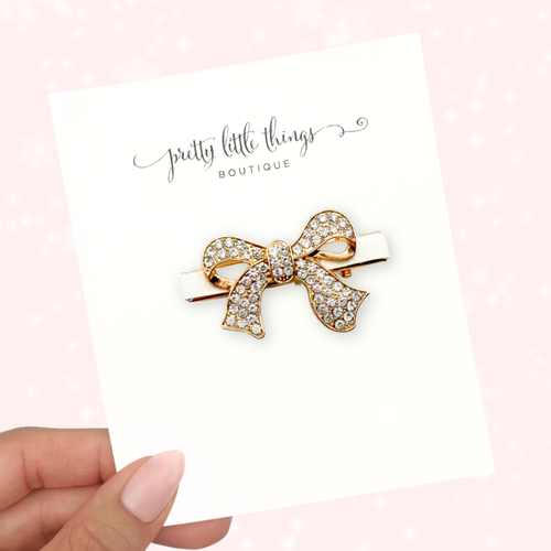 • Crystal Bow on White - Bar Clip 4.5 cm